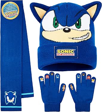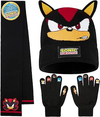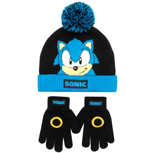 SONIC THE HEDGEHOG WintermĂŒtze und Handschuhe Set fĂŒr Jungen – warme und bequeme Beanie-MĂŒtze und Handschuhe – perfekt fĂŒr Kinder im Alter von 6–12 Jahren, Schwarz , EinheitsgrĂ¶ĂŸe