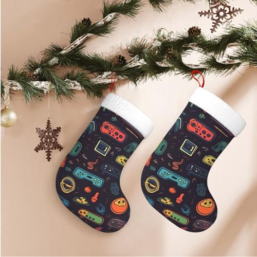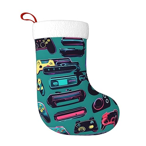 WeihnachtsstrĂŒmpfe, 45 cm, Schwarz, Blau, HellgrĂŒn, Creme, Hellblau, Braun, Hellviolett, Gaming-Controller, WeihnachtsstrĂŒmpfe, Dekoration, hĂ€ngende StrĂŒmpfe fĂŒr Zuhause, Kamin, Weihnachtsbaum, Socke - Weihnachts-Gaming-Merchandise