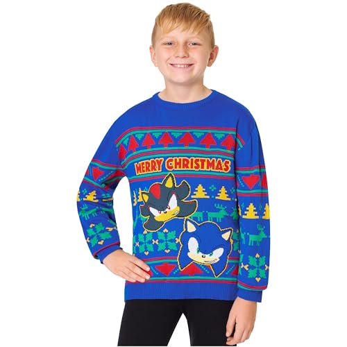 Sonic The Hedgehog Pullover Jungen 4-10 Jahre, Flauschiger Weihnachtspullover, Christmas Sweater, Geschenke fĂŒr Jungs (5-6 Jahre, Blau)