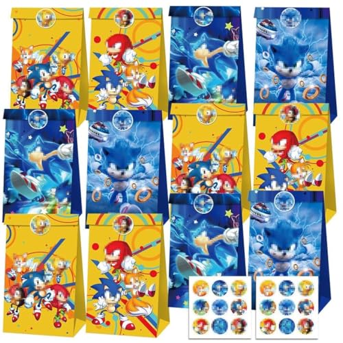 GeschenktĂŒten, 12 StĂŒck PapiertĂŒten, 18 StĂŒck Aufkleber, GeschenktĂŒten Kindergeburtstag, Cartoon SĂŒĂŸigkeiten TĂŒten, Kinder GeschenktĂŒten Geburtstag fĂŒr Verpacken von Geschenken, Party