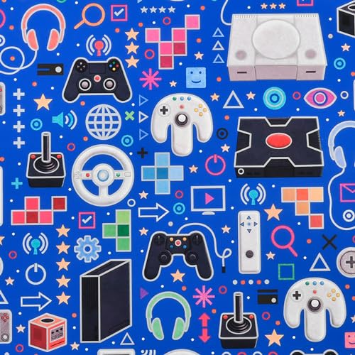 WERNNSAI Gaming Wende Geschenkpapierrolle – 1 Rolle 43 cm x 10 m Spiel Geschenkpapierrolle Jungen Kinder Videospiel Geschenkpapier fĂŒr Geburtstagsspiel Partygeschenk Blaues Geschenkpapier