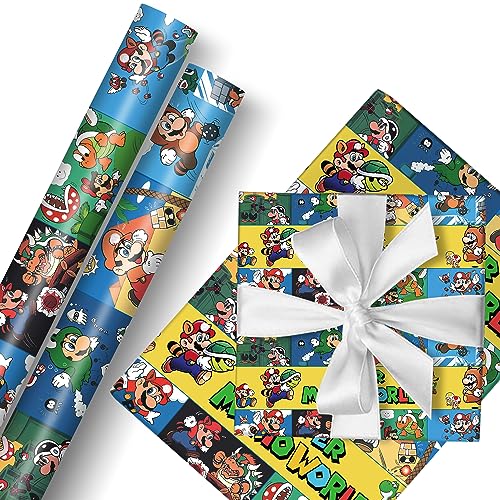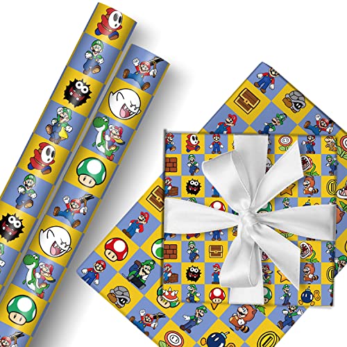 MAJEQZGY Mario Geschenkpapier 2 Rollen 43 cm x 3 m Geschenkpapier Langlebig Geschenk Papier Pack fĂŒr Kindergeburtstag, Party Aufbewahrung Festliche Dekoration (Grid Jump)