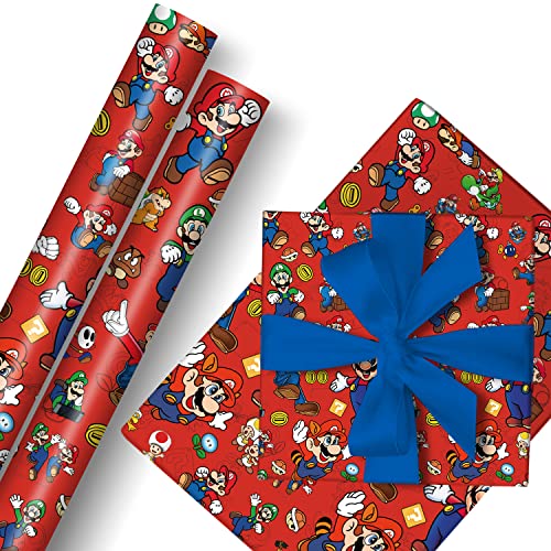 MAJEQZGY Mario Geschenkpapier 2 Rollen 43 cm x 3 m Geschenkpapier Langlebig Geschenk Papier Pack fĂŒr Kindergeburtstag, Party Aufbewahrung Festliche Dekoration (Rote MĂŒnze)